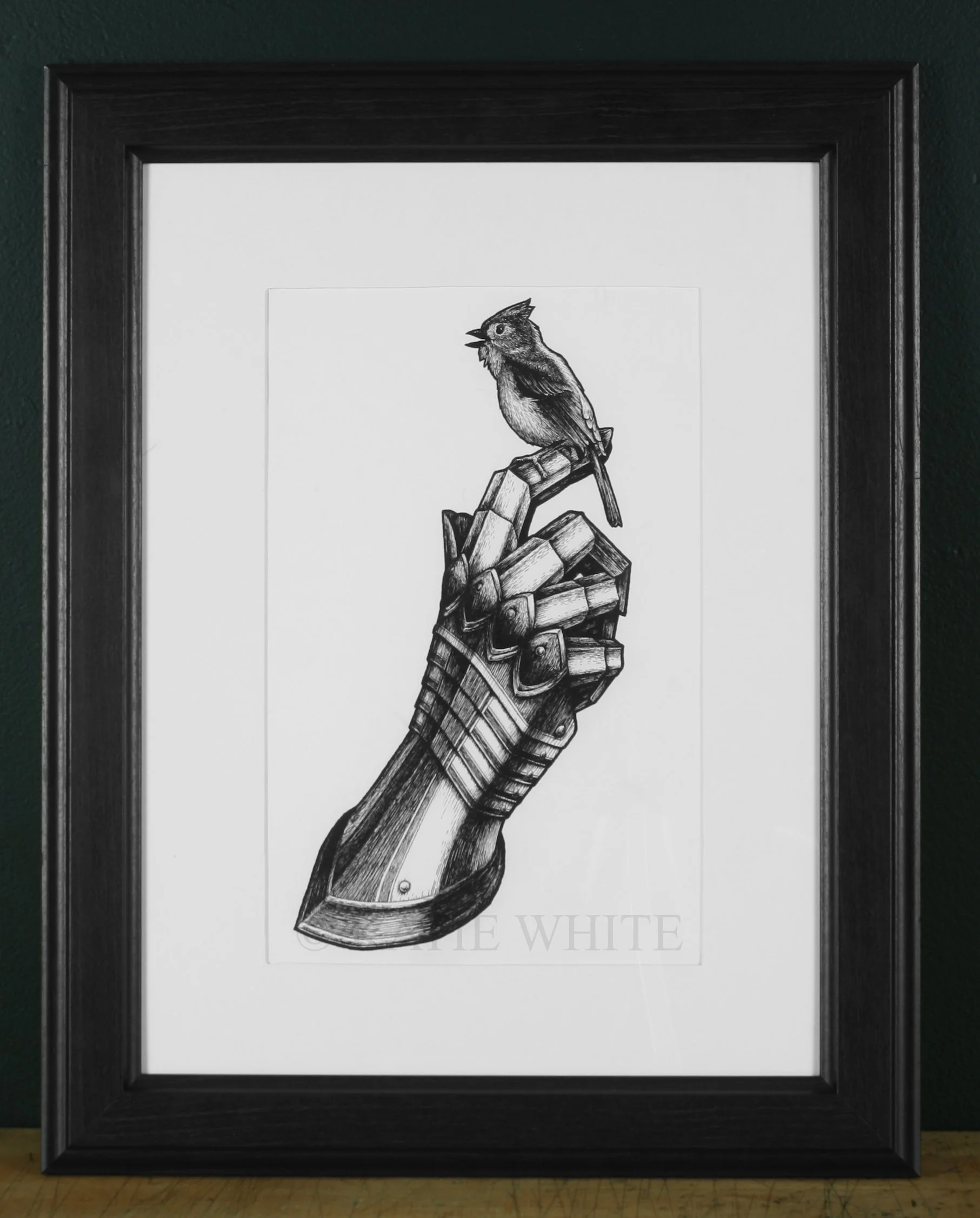 GAUNTLET & BIRD / PEN & INK / 7.5” x 11.5” / 2021